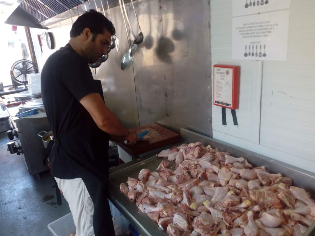 Para la elaboración, y distribución de las comidas, en todo momento se contó con un cocinero voluntario de larga estancia, (nuestro presidente) y de refugiados voluntarios que esperan su ubicación en Europa a quienes retribuíamos económicamente con una cantidad simbólica de 250 € al mes así como voluntarios itinerantes internacionales. Con este modus operandi logramos formar en nuestra cocina a mas de 50 refugiados quedando perfectamente capacitados para trabajar en restauración en un futuro