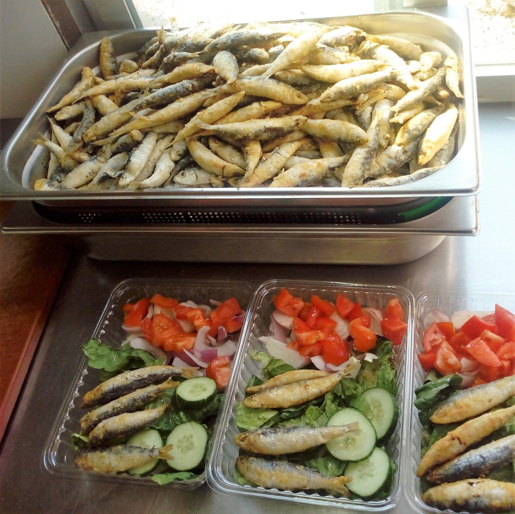 La gran mayoría contaban con el sistema de catering empleado para alimentar a estos refugiados con la bajísima calidad de costumbre .A esta precaria alimentación habia que añadirle el hándicap de ser trasladada desde Atenas en ferry donde se elaboraba en las cocinas del catering , almacenada inadecuadamente en Lesbos (rompiendo la cadena de frío a cada paso) para dos o tres días, lo que llevaba a tener una media de 50 intoxicaciones alimentarias diarias según nuestros datos recabados in situ, en persona, constatamos gráficamente que los refugiados prefieren tirar la comida y pasar hambre, antes de arriesgarse a estar con vómitos y diarreas en los días siguientes, al igual que ocurria en las islas de Khios y Samos abastecidas de igual manera