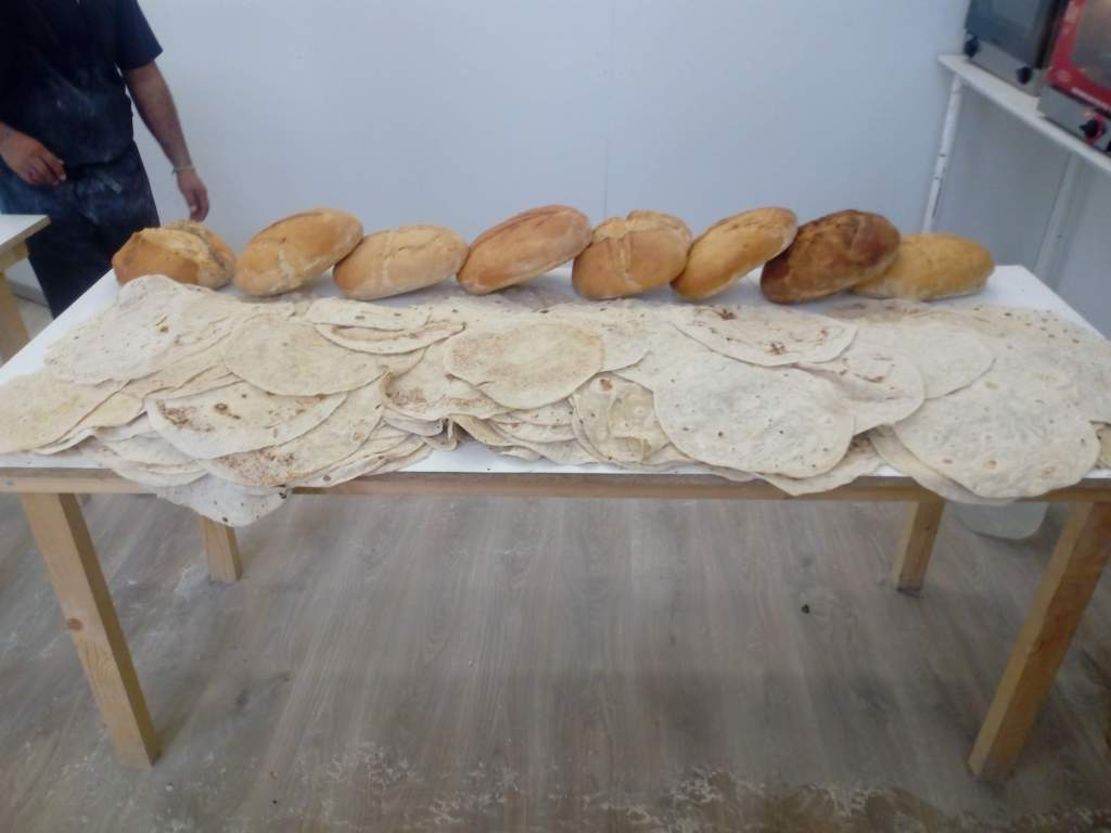 Gracias a todos los voluntarios y voluntarias, de todas las procedencias, que han estado , están y estarán desde el primer día , fabricamos 5.000 unidades de pan árabe todas las semanas y lo distribuimos gratuitamente tanto entre los refugiados del campamento de Nea Kavala como entre las personas refugiadas sin derecho a asilo que se encuentran viviendo en las calles de Tesalónica (a través de la asociación Soul Food), y las familias refugiadas residentes en