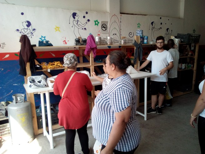 Una vez en marcha la panadería Lujan en Polikastro (norte de Grecia) quisimos ir un poco mas allá y nació la idea de montar este pequeño supermercado gratuito para los refugiados. Abastecimos de ropa y calzado al comienzo del proyecto , pero tardamos poco en añadir frutas y verduras frescas asi como alimentos no perecederos provenientes de las recogidas que realizábamos en España periódicamente.