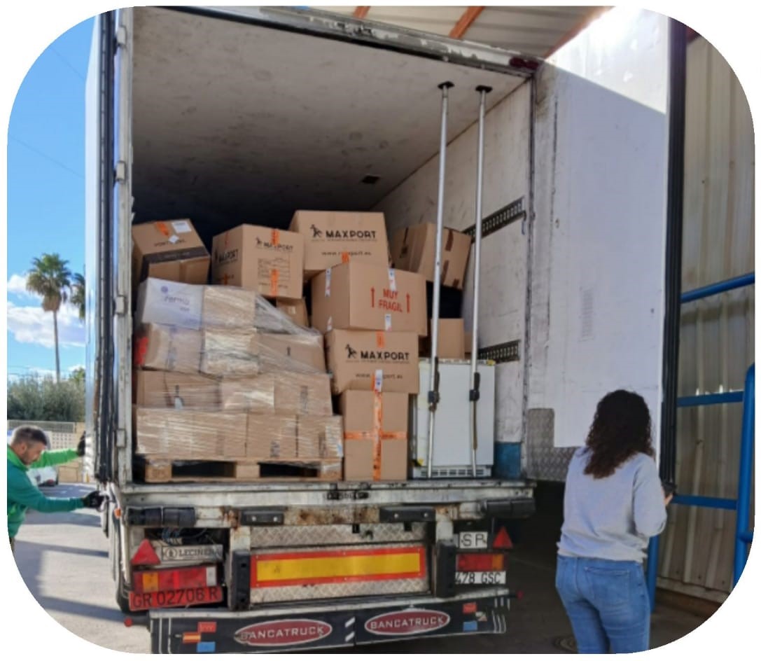 Continuamos el día 21 con todo el equipo en la selección y clasificación de los alimentos no perecederos aún quedaban en el almacén ,como dos trailers mas o menos, (comprobando caducidad pieza a pieza y colocando y etiquetando todo el material) y se empezaron con los repartos de comida no perecedera a los particulares según íbamos contactando y a los puntos de distribución de ayuda vecinales en Paiporta , Masanassa , y Catarroja.