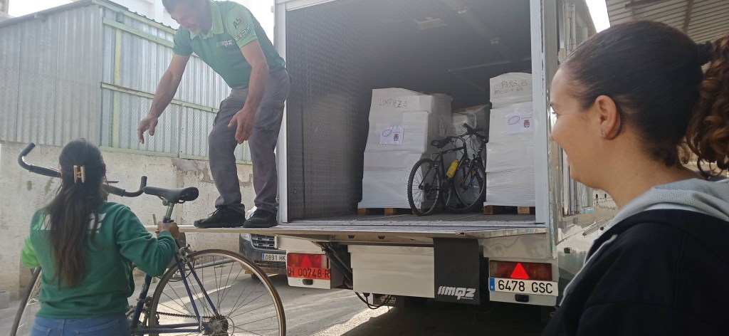 En esos 45 días, fuimos conscientes de la falta de vehículos para desplazarse de todas las personas afectadas. Así que, a través del taller social Guindostán de la Guindalera , Madrid, conseguimos una donación de 65 bicicletas de segunda mano perfectamente revisadas y puestas a punto en este taller social de bicicletas , junto con otras 20 aportadas desde Alcázar de San Juan .