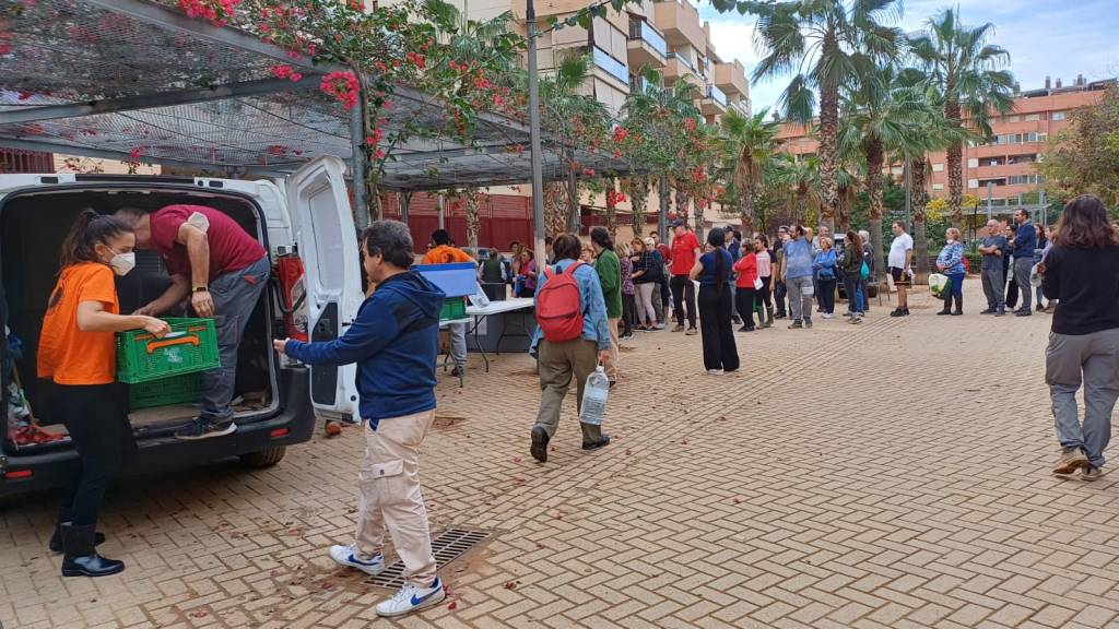 Sin duda la unión estaba haciendo la fuerza la global y la individual. Amigos que no dudaron en presentarse allí para echar una mano, personas que hablaban con conocidos de conocidos y de repente un grupo de jóvenes traían lo que habían recogido entre sus amigos, camioneros incansables que porteaban recogidas de distintos sitios , y no dudaban en venir hasta Valencia. En cada uno de esos movimientos se veía el cariño y calor humano que se le tiene a Valencia, se podía sentir, se podía respirar en el aire , a su vez se fueron uniendo personas y asociaciones que conocimos allí y que nos aportaron en muchos sentidos, como Jorge Fernández de Xama , Pauli de El chef catering, Jaime de Amigos de la calle…. ,Y nuestro tejido amigable siguió creciendo.