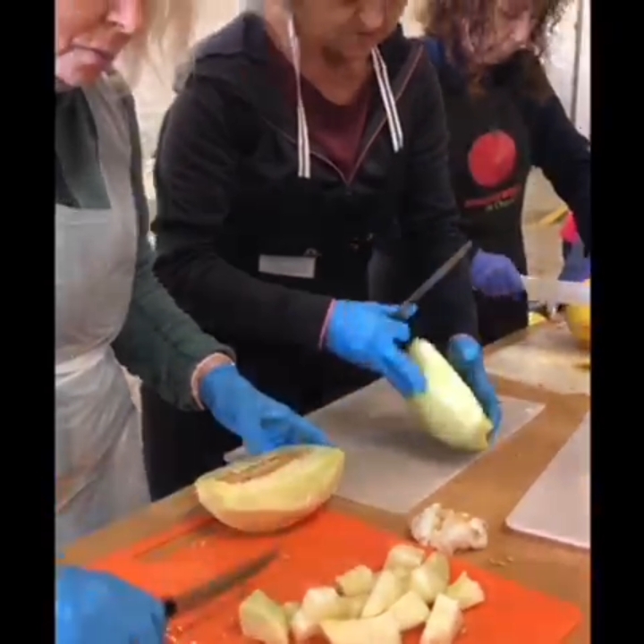 Son también personas refugiadas las que trabajan de forma gratificada ; las que elaboran, cocinan y distribuyen, las comidas y el pan, utilizando materias primas que compramos a pequeños comerciantes de la zona para incidir en la manera de lo posible en beneficiar también a la sociedad local.